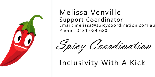 The name “Spicy” celebrates neurospicy — a proud, empowering term that reflects neurodivergence, lived experience, and the strength found in difference. Specialising in psychosocial and complex needs, Spicy Coordination provides real advocacy, practical planning, and meaningful connections for people living with disability, trauma, or mental health challenges.